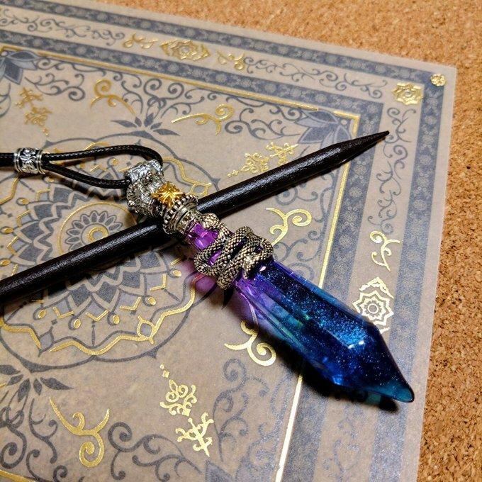 【傾国の魔導師の杖】を、もっと身近なアクセサリーに落とし込む、というテーマをかかげ、セルフオマージュ作品のペンダントを仕立てました。